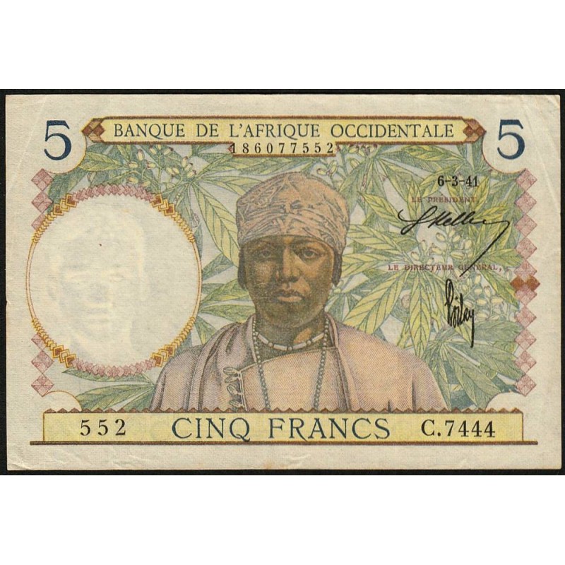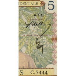 AOF - Pick 21_b5 - 5 Francs - Série C.7444 - 06/03/1941 - Etat : TTB