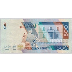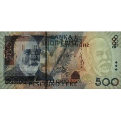 Avers : Portrait d'Ismail Qemali (1844-1919) principal chef du mouvement national albanais et fondateur de l'État albanais moderne, aigle bicéphale héraldique, porte-plume, contour du bâtiment de la banque d'Albanie à Tirana