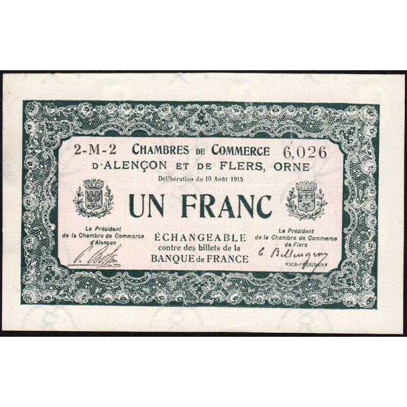 • Alençon & Flers (Orne) - Pirot 6-23 - 50 centimes - Série 2M2 - 10/08/1915 - Etat : SPL