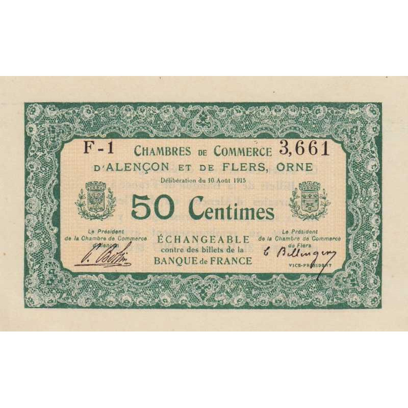 • Alençon & Flers (Orne) - Pirot 6-3 - 50 centimes - Série F1 - 10/08/1915 - Etat : SPL