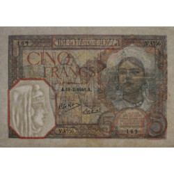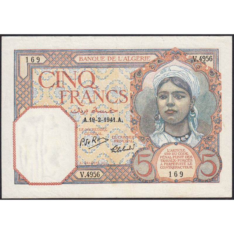 • Algérie - Pick 77b - 5 francs - Série V.4956 - 19/02/1941 - Etat : SUP