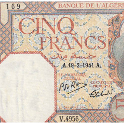Algérie - Pick 77b - 5 francs - Série V.4956 - 19/02/1941 - Etat : SUP
