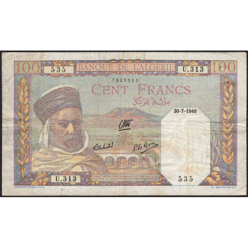 Revers : Laboureur et sa charrue tirée par deux boeufs, paysage de Kabylie avec village sur tertre