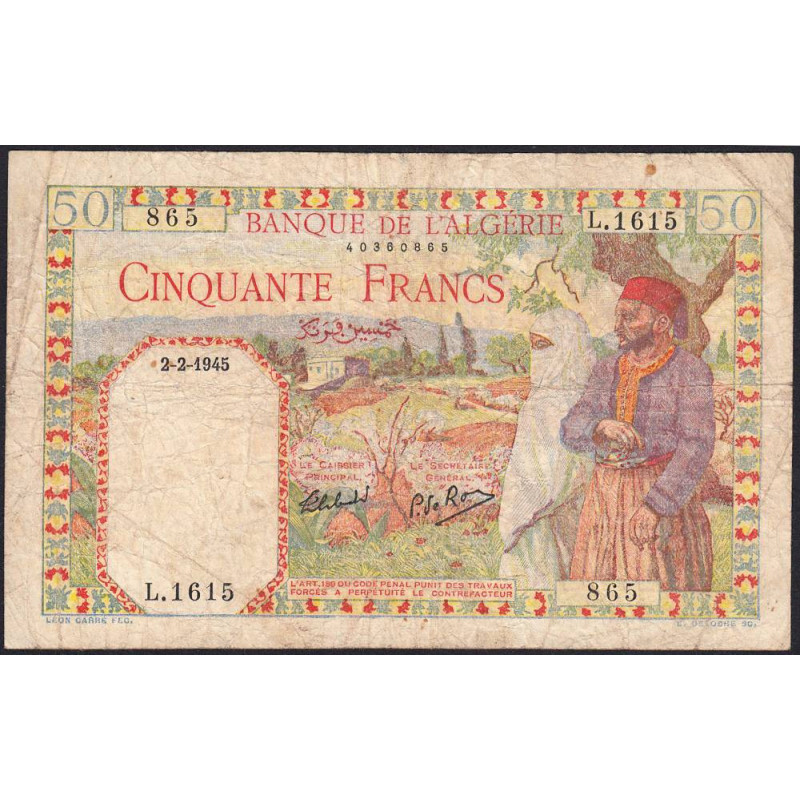 Algérie - Pick 87 - 50 francs - 02/02/1945 - Etat : TB