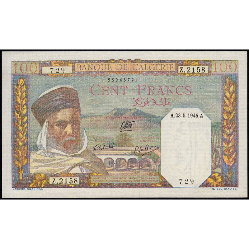 Revers : Laboureur et sa charrue tirée par deux boeufs, paysage de Kabylie avec village sur tertre
