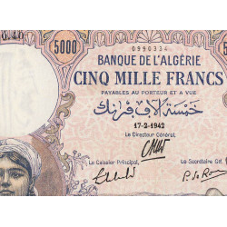 Algérie - Pick 90 - 5'000 francs - 17/02/1942 - Etat : TTB-