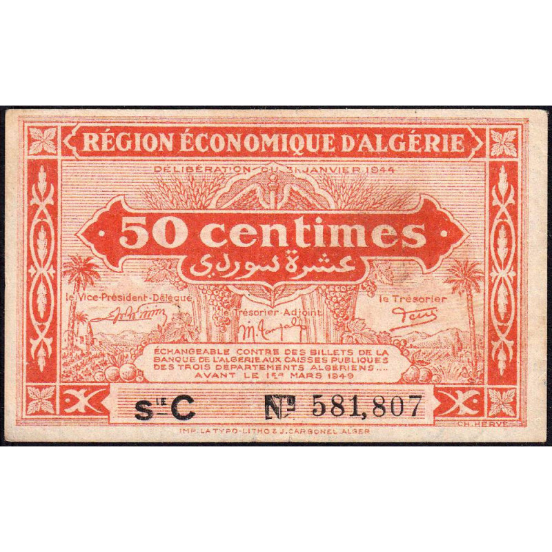 • Algérie - Pick 97a - 50 centimes - Série C - 31/01/1944 - Etat : TTB+