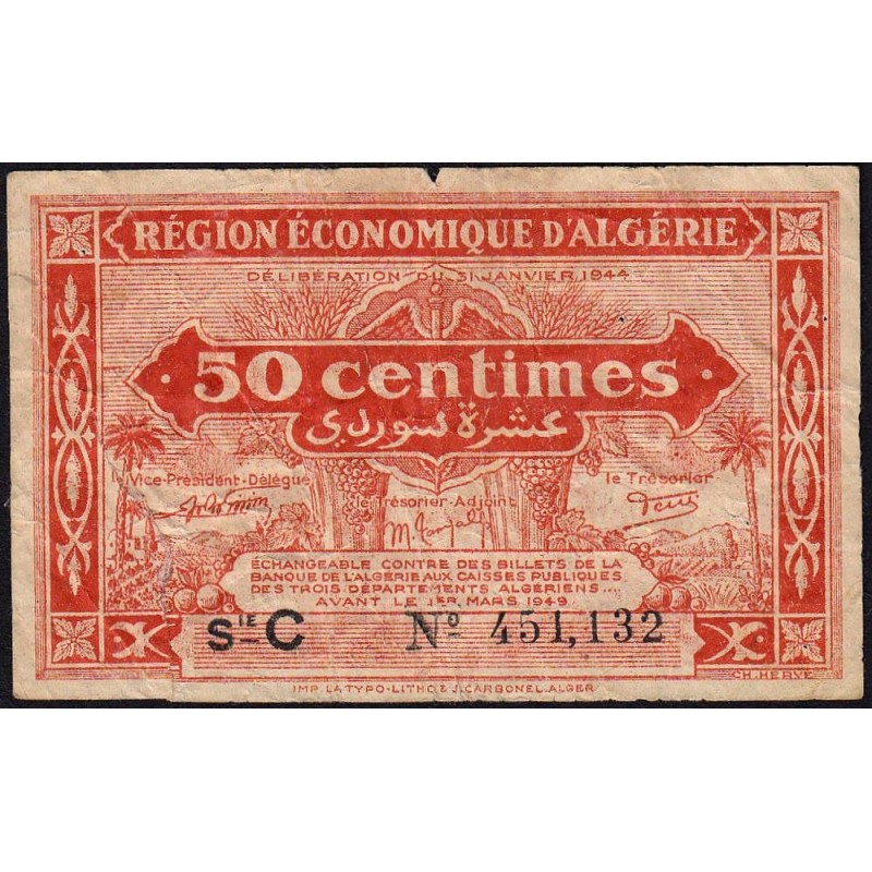 Revers : Armoiries des 8 villes principales : Alger, Bone, Bougie, Constantine, Mascara, Mostaganem, Oran, Philippeville