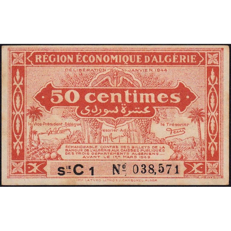 Algérie - Pick 97a - 50 centimes - Série C1 - 31/01/1944 - Etat : TTB+