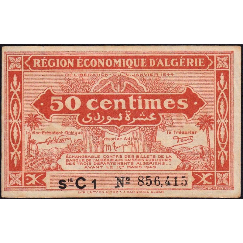 • Algérie - Pick 97a - 50 centimes - Série C1 - 31/01/1944 - Etat : TTB+