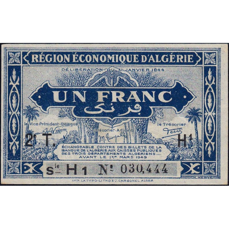 Revers : Armoiries des 8 villes principales : Alger, Bone, Bougie, Constantine, Mascara, Mostaganem, Oran, Philippeville