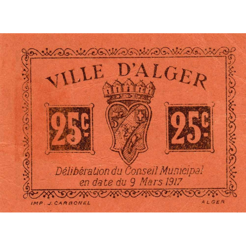 • Algérie - Alger 11 - 25 centimes - 09/03/1917 - Etat : SUP