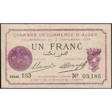 Algérie - Alger 137-1 - 1 franc - Série 153 - 03/09/1914 - Etat : TTB