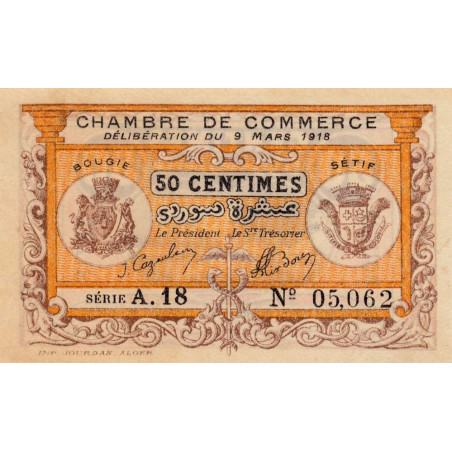 Algérie - Bougie-Sétif 139-3 - 50 centimes - Série A18 - 09/03/1918 - Etat : SPL+