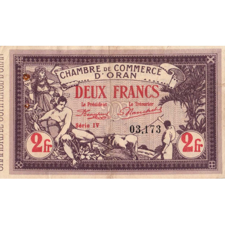 • Algérie - Oran 141-24 - 2 francs - Série IV - 04/02/1920 - Etat : TTB+