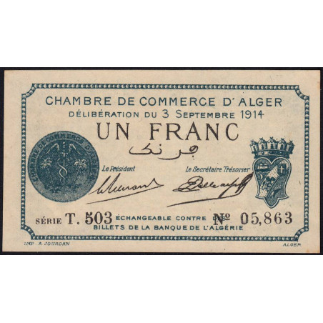 Algérie - Alger 137-4 - 1 franc - Série T.503 - 03/09/1914 - Etat : SPL
