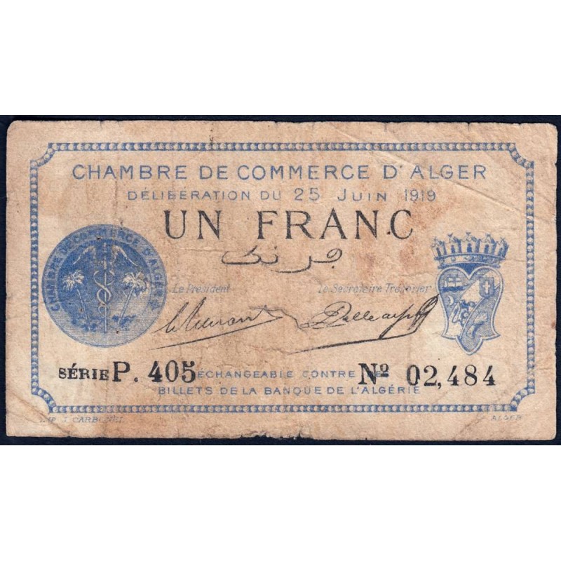 • Algérie - Alger 137-12 - 1 franc - Série P.405 - 25/06/1919 - Etat : TB-