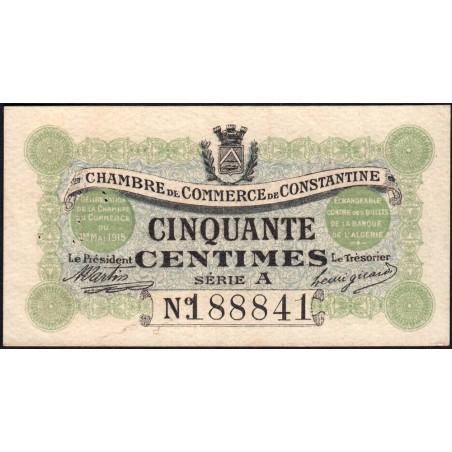 • Algérie - Constantine 140-1a - 50 centimes - Série A - 01/05/1915 - Etat : TTB+