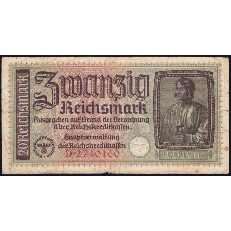 • Allemagne - Territoires occupés - Pick R 139 - 20 reichsmark - Série D - 1939 - Etat : B+