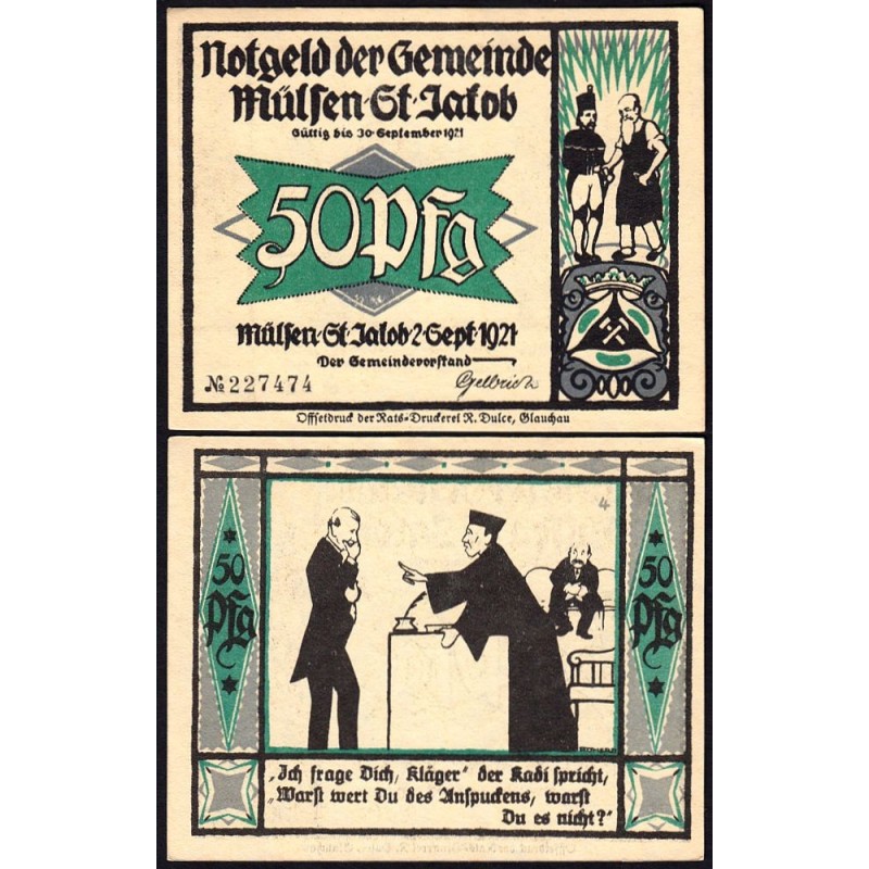 Allemagne - Notgeld - Mülsen-St-Jacob - 50 pfennig - Type 4 - 02/09/1921 - Etat : NEUF
