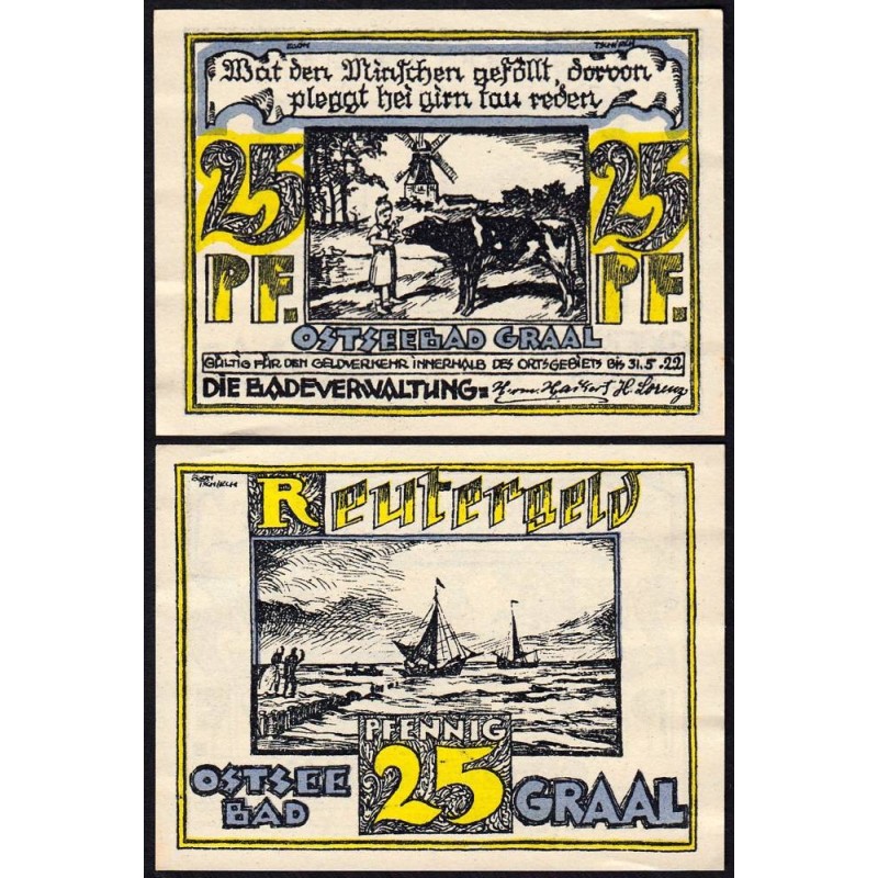 Billet Reutergeld : billet émis par 70 villes et communes allemandes en 1922. Ils ont en commun de représenter des illustrations et des citations du poète Fritz Reuter.