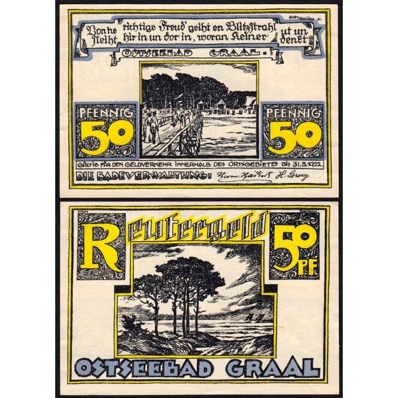 Billet Reutergeld : billet émis par 70 villes et communes allemandes en 1922. Ils ont en commun de représenter des illustrations et des citations du poète Fritz Reuter.