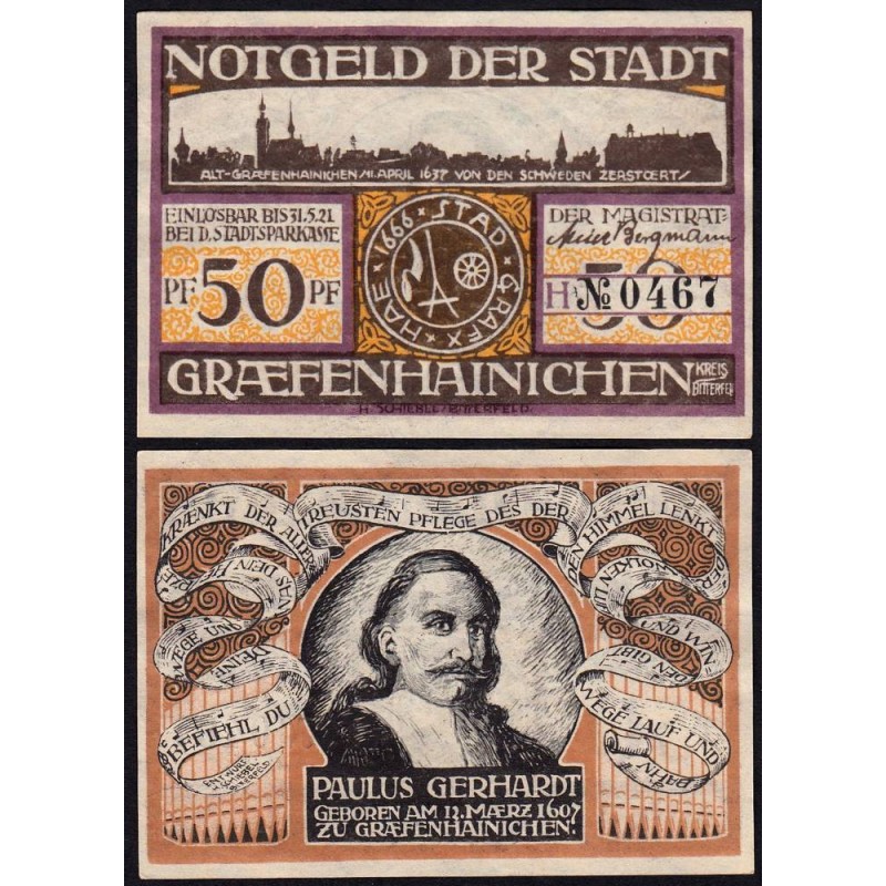 • Allemagne - Notgeld - Gräfenhainichen - 50 pfennig - Lettre H - 1921 - Etat : pr.NEUF
