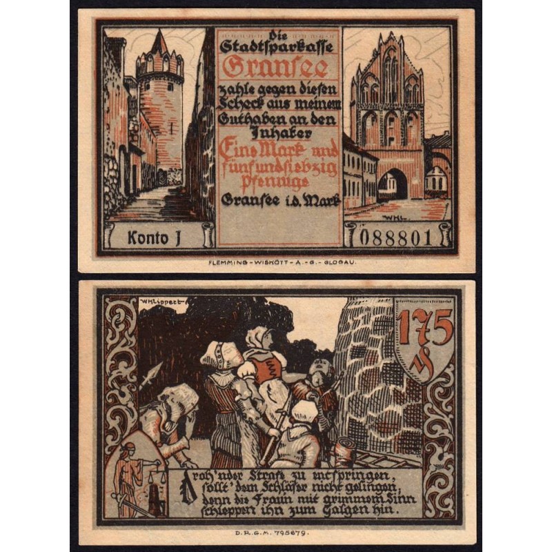 Allemagne - Notgeld - Gransee - 175 pfennig - Série J - 1921 - Etat : SPL