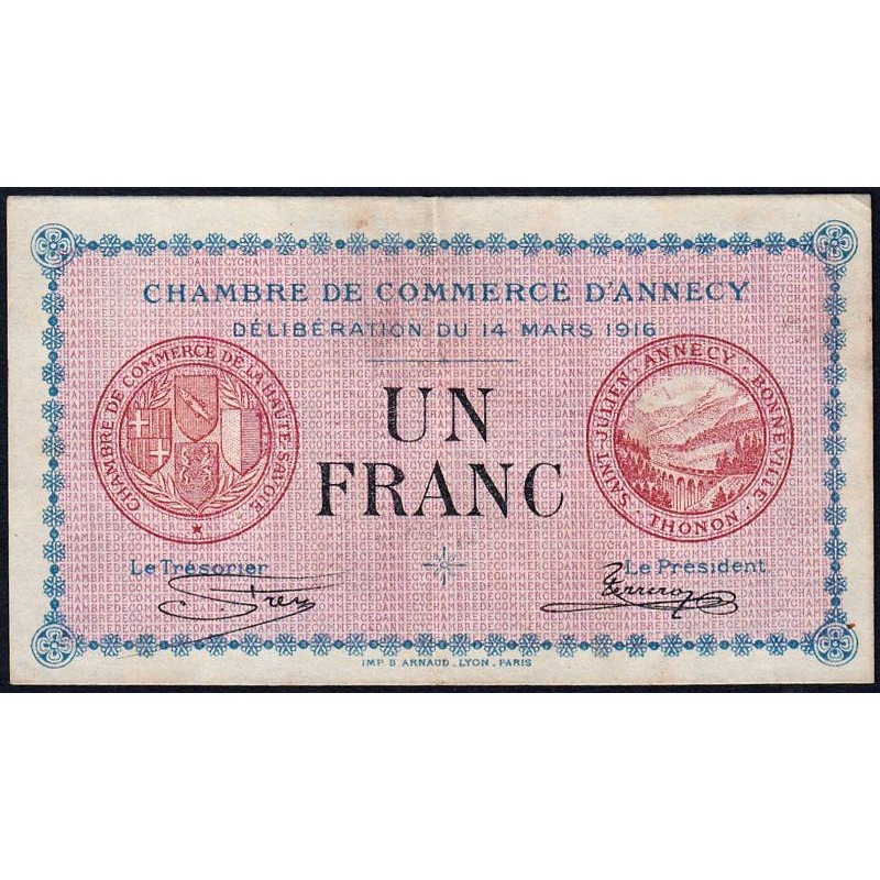 Annecy - Pirot 10-5 - 1 franc - Série 188 - 14/03/1916 - Etat : TTB