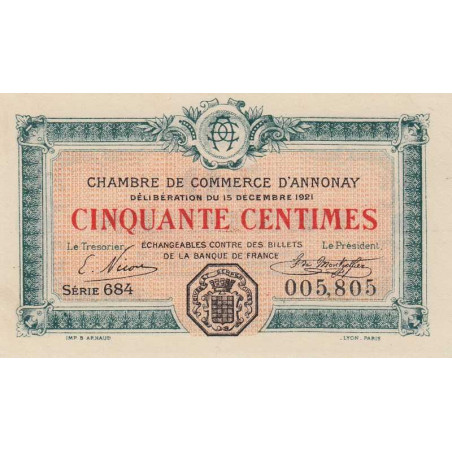 Annonay - Pirot 11-23 - 50 centimes - Série 684 - 15/12/1921 - Etat : SPL