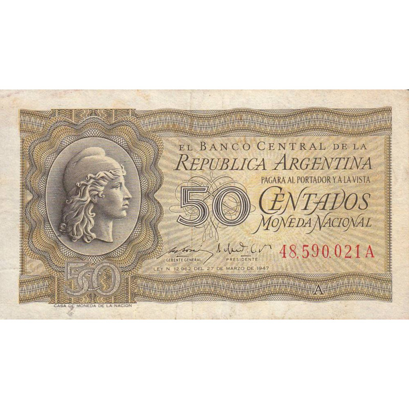 • Argentine - Pick 259b - 50 centavos - Série A - 27/03/1947 (1950) - Etat : SPL-