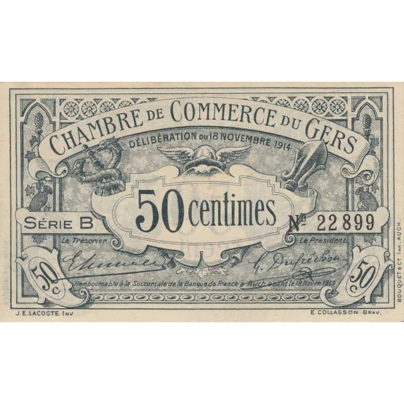Auch (Gers) - Pirot 15-1 - 50 centimes - Série B - 18/11/1914 - Etat : SUP