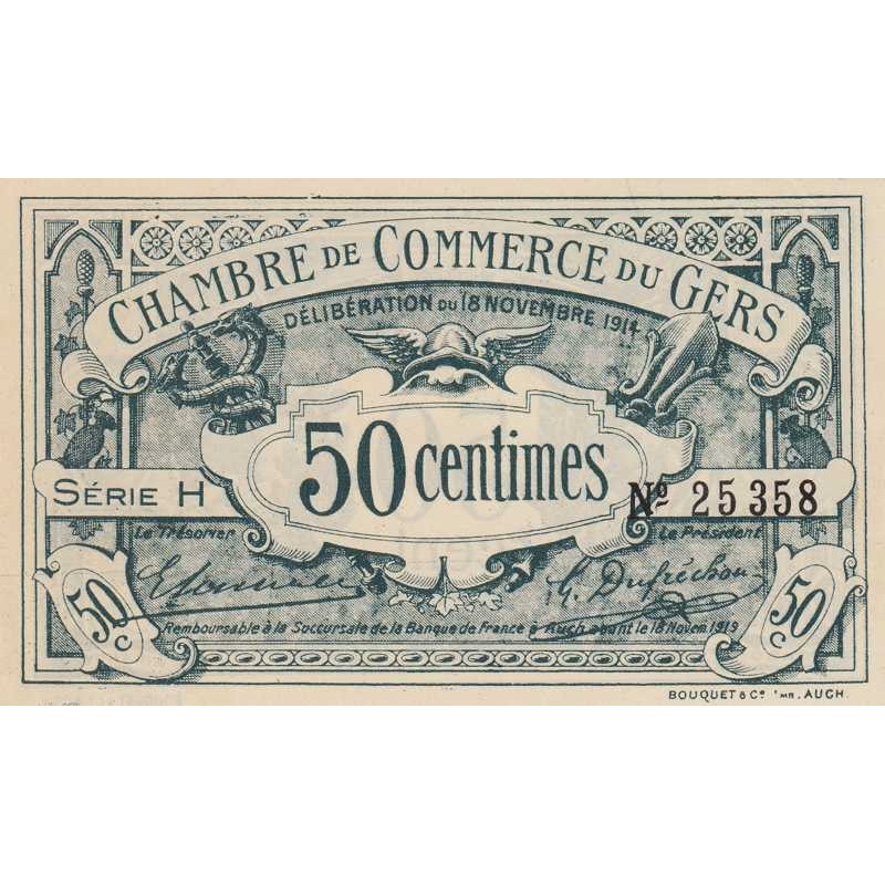 • Auch (Gers) - Pirot 15-5 - 50 centimes - Série H - 18/11/1914 - Etat : SPL