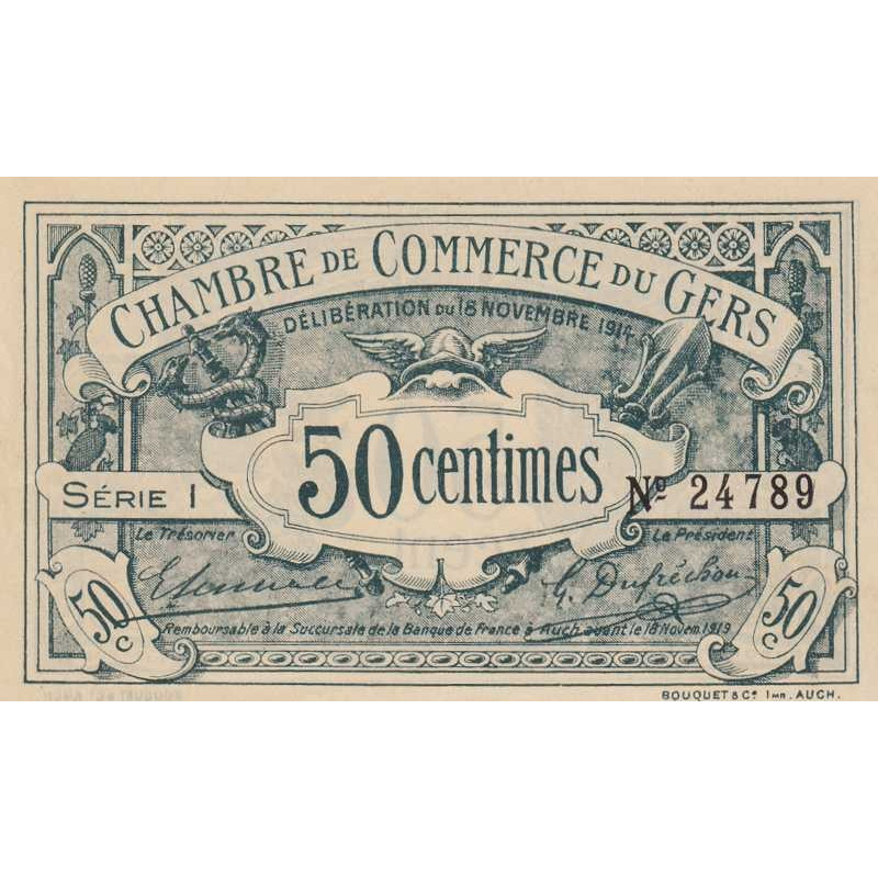 • Auch (Gers) - Pirot 15-5 - 50 centimes - Série I - 18/11/1914 - Etat : SUP