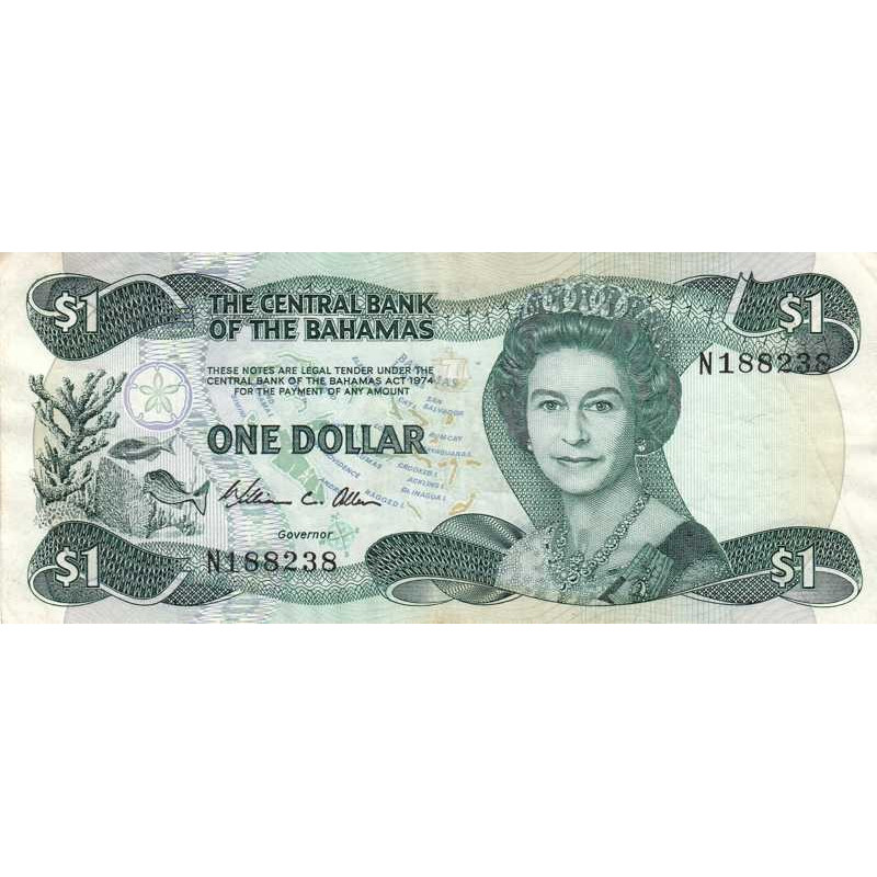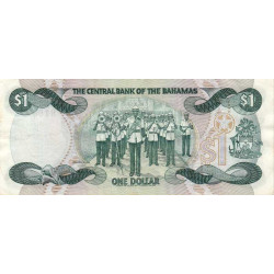 Revers : Fanfare de la police au centre, armoiries des Bahamas à droite