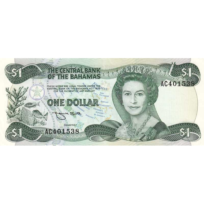Revers : Fanfare de la police au centre, armoiries des Bahamas à droite