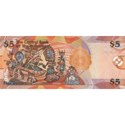Revers : Festival Junkanoo avec défilé de rue costumé en musique à gauche, armoiries des Bahamas au centre