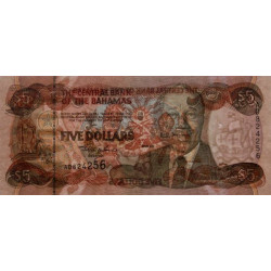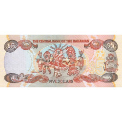 Revers : Festival Junkanoo avec défilé de rue costumé en musique au centre, armoiries des Bahamas à droite
