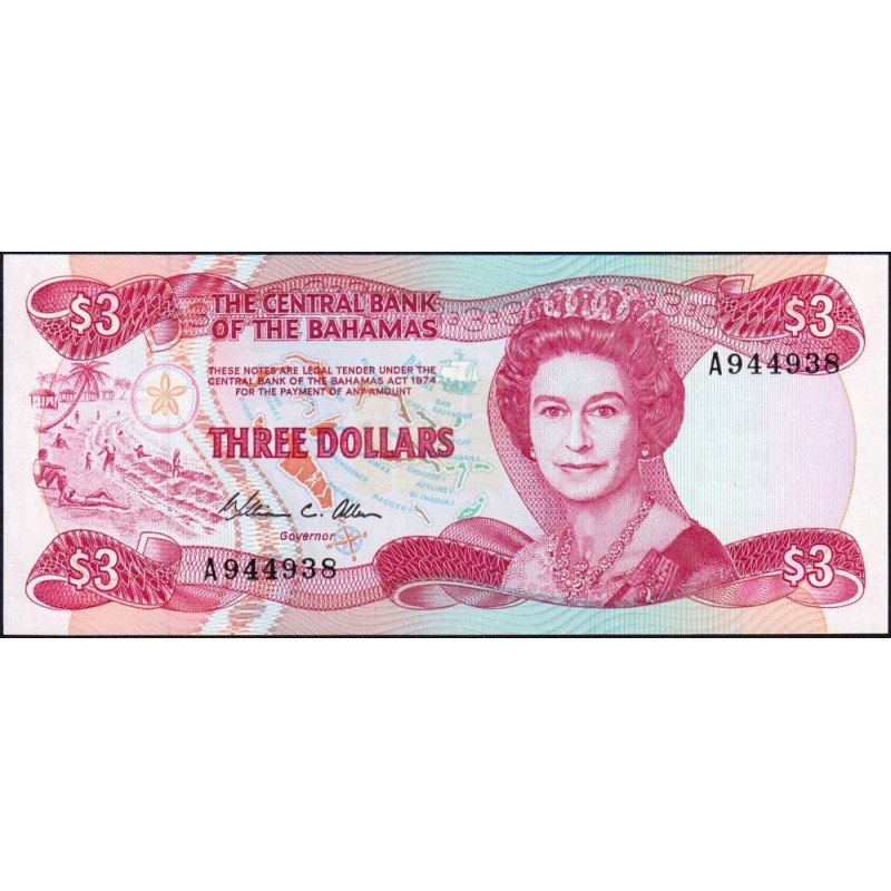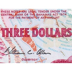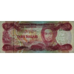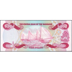 Bahamas - Pick 44a - 3 dollars - Série A - Loi 1974 (1984) - Etat : NEUF