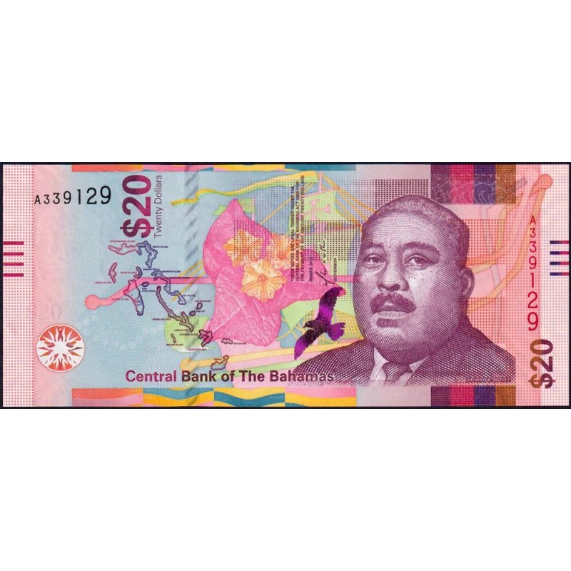 Avers : Portrait de Sir Milo Boughton Butler (1906-1979) gouverneur général des Bahamas de 1973 à 1979, carte des Bahamas à gauche, fleur de bougainvillier au centre