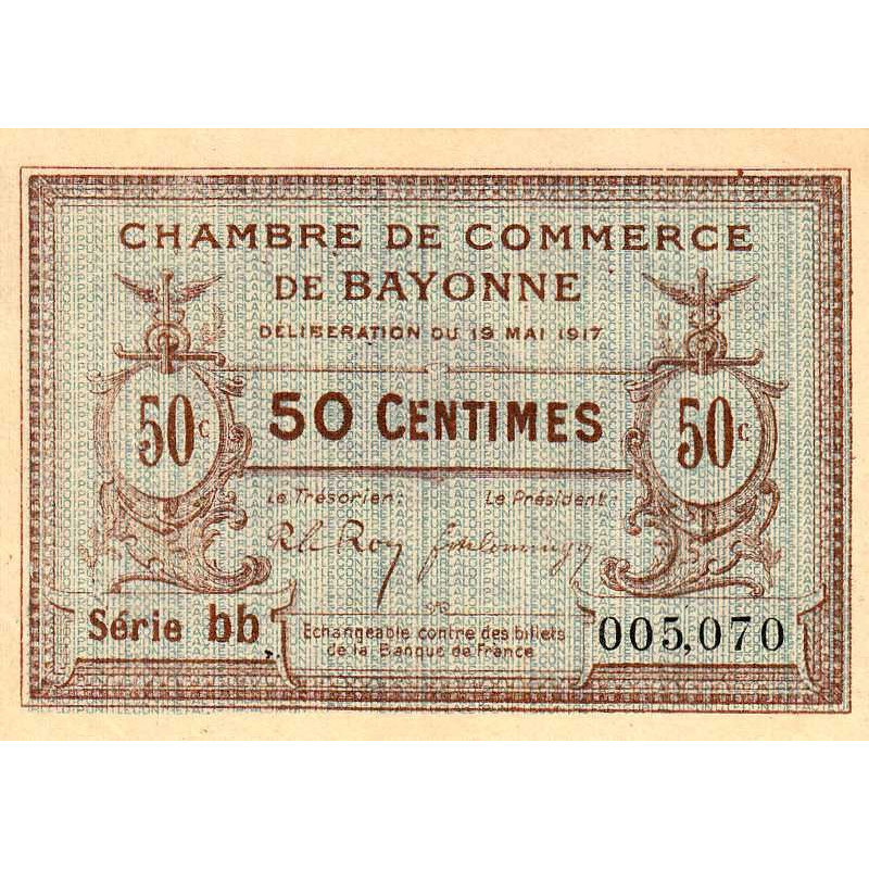 Bayonne - Pirot 21-42 - 50 centimes - Série bb - 19/05/1917 - Etat : SUP