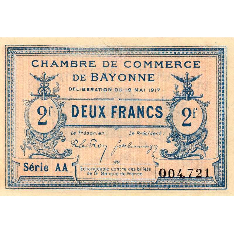 Bayonne - Pirot 21-52 - 2 francs - Série AA - 19/05/1917 - Etat : SUP