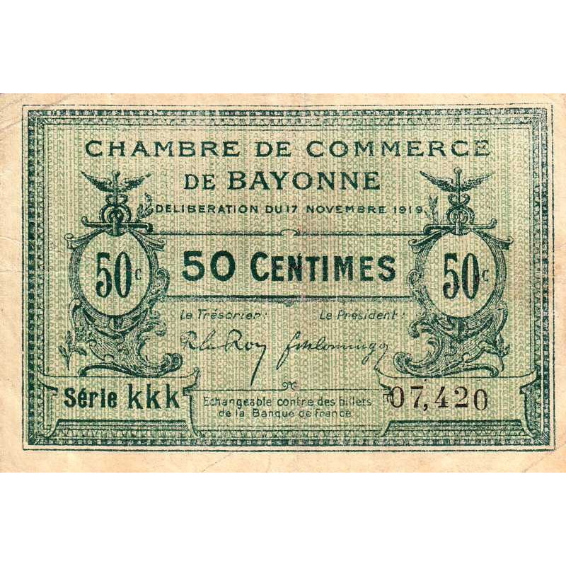 Bayonne - Pirot 21-61 - 50 centimes - Série kkk - 17/11/1919 - Etat : TTB