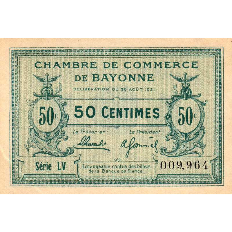 Bayonne - Pirot 21-69 - 50 centimes - Série LV (55) - 26/08/1921 - Etat : SUP+