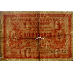 Bayonne - Pirot 21-75 - 2 francs - Série h - 04/10/1922 - Etat : B+