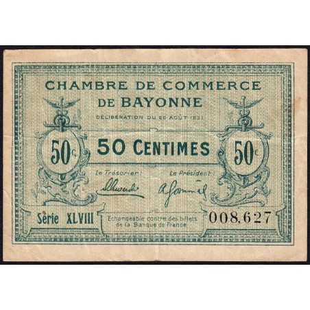 • Bayonne - Pirot 21-69 - 50 centimes - Série XLVIII (48) - 26/08/1921 - Etat : TB