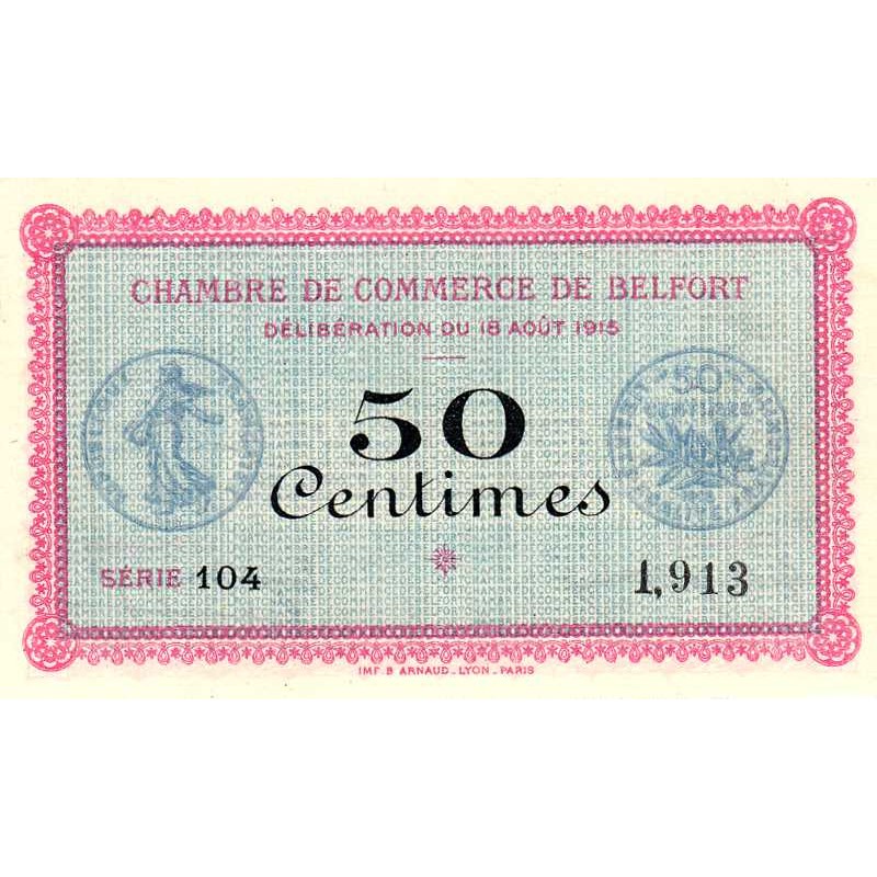 • Belfort - Pirot 23-1 variété - 50 centimes - Série 104 - 18/08/1915 - Etat : SUP