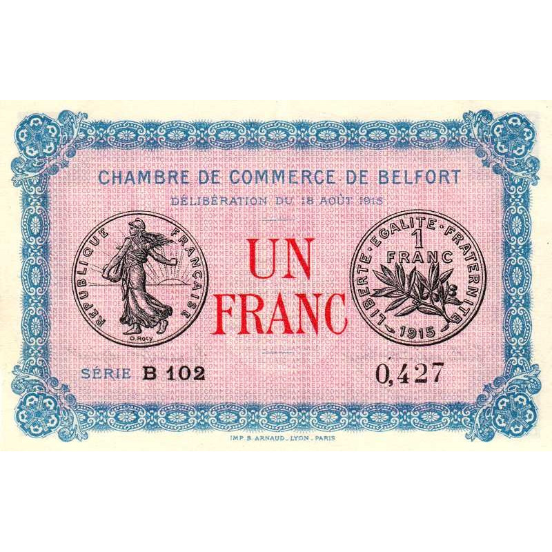 • Belfort - Pirot 23-9 - 1 franc - Série B 102 - 18/08/1915 - Etat : SUP
