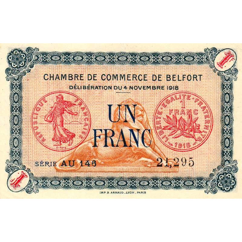 Belfort - Pirot 23-45 - 1 franc - Série AU 146 - 04/11/1918 - Etat : SUP