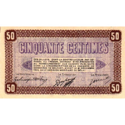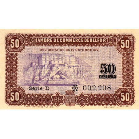 • Belfort - Pirot 23-56 - 50 centimes - Série D - 12/10/1921 - Etat : SPL
